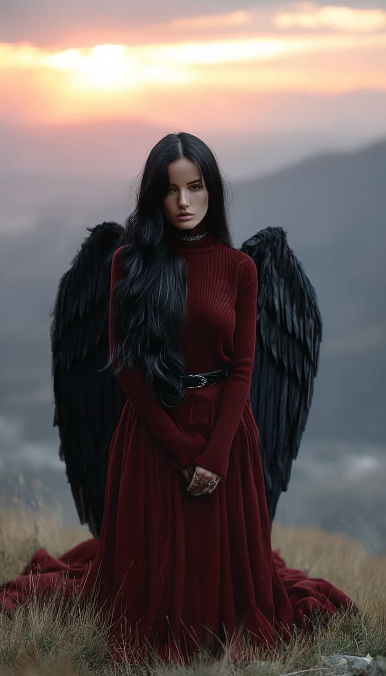 保持这张图片其他部分不变,将图中黑色的衣服变为深邃的暗红色色。注意保留衣服的褶皱和光影细节